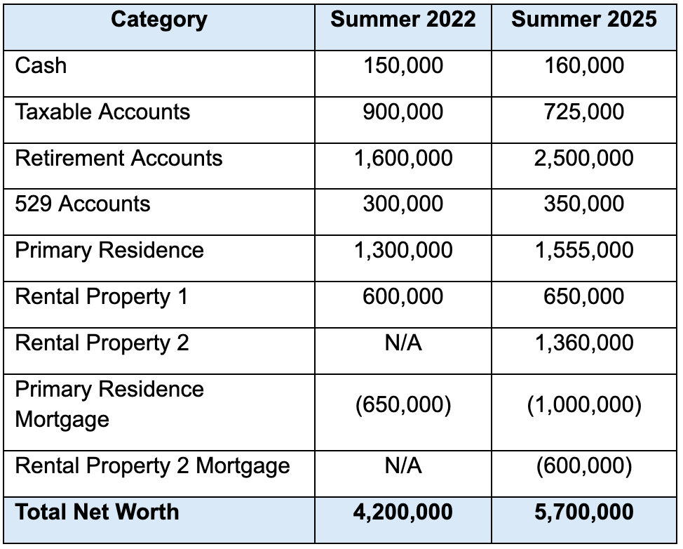 From a financial standpoint, not much has changed. Although I’m excited to see our net worth expand over the last three years in a material manner, we are now shifting our conscious mindset on ways to utilize this blessing to help others, build memories through experiences, and begin determining how to transition into the next phase of our lives.